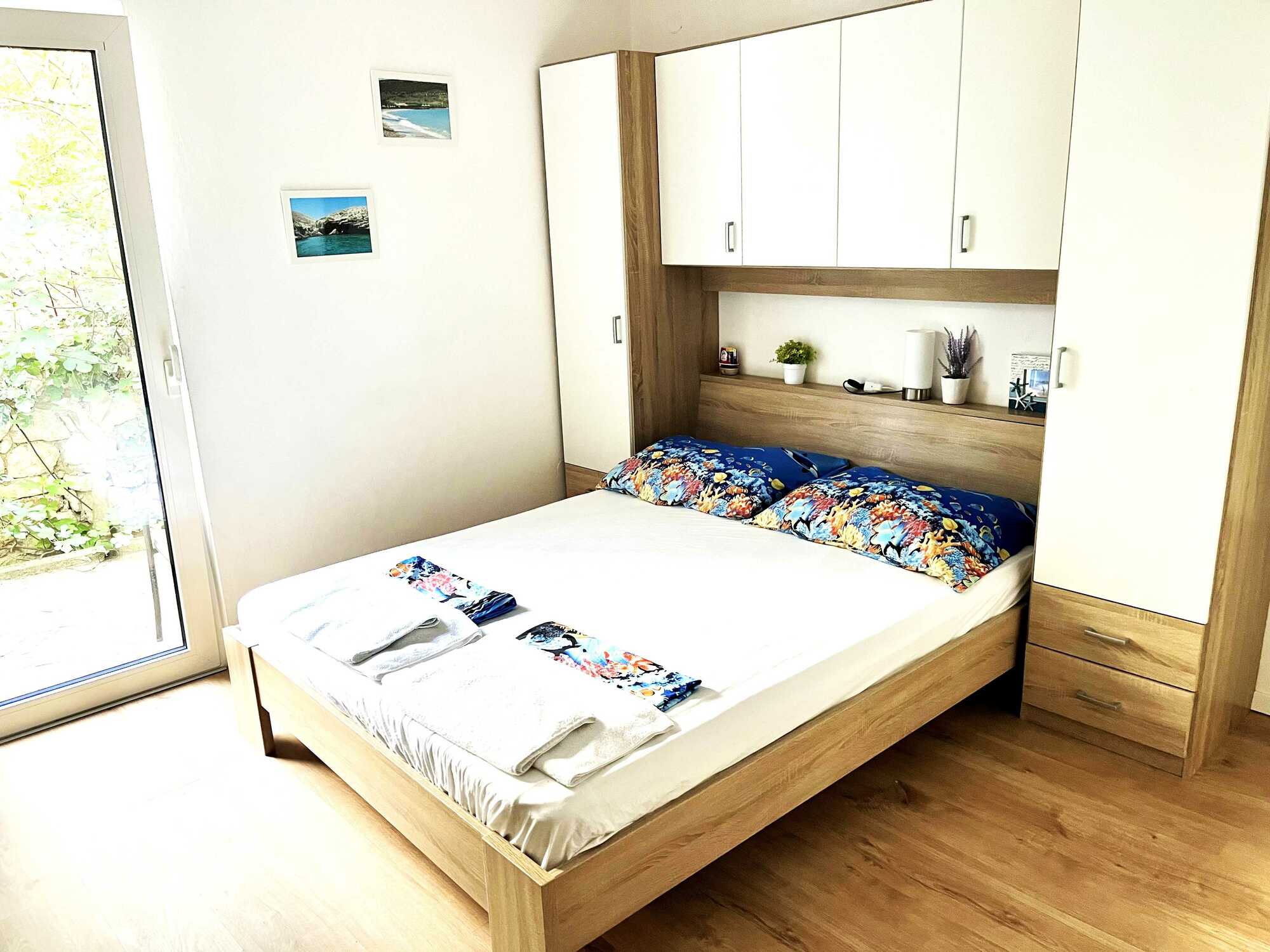 Studio 1 se nachází v přízemí vily. Velká manželská postel, vybavený kuchyňský kout, lednička, rychlovarná konvice, mikrovlnná trouba, TV s plochou obrazovkou Klima, WiFi, terasa se zahradním posezením.