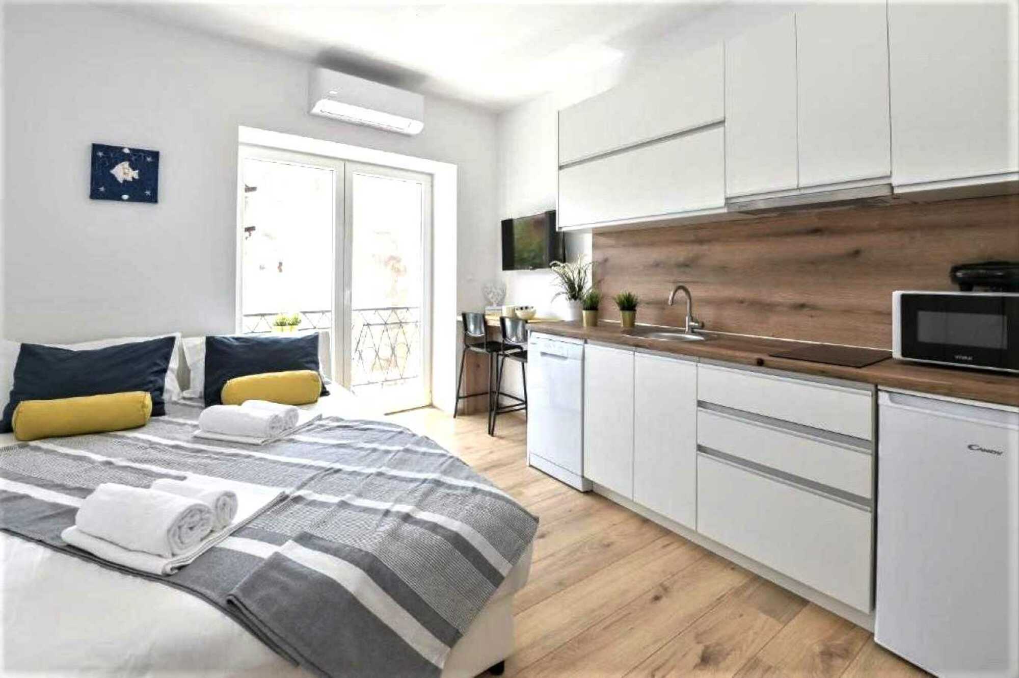 Apartmán 1 se nachází v prvním patře, má plně vybavenou moderní kuchyni s myčkou nádobí, mikrovlnka, toustovač, rychlovarná konvice je samozřejmostí. Velká manželská postel, TV s plochou obrazovkou, klima, WIFI, koupelna s vysoušečem vlasů a vchod na balkon, kde je zahradní posezení.
